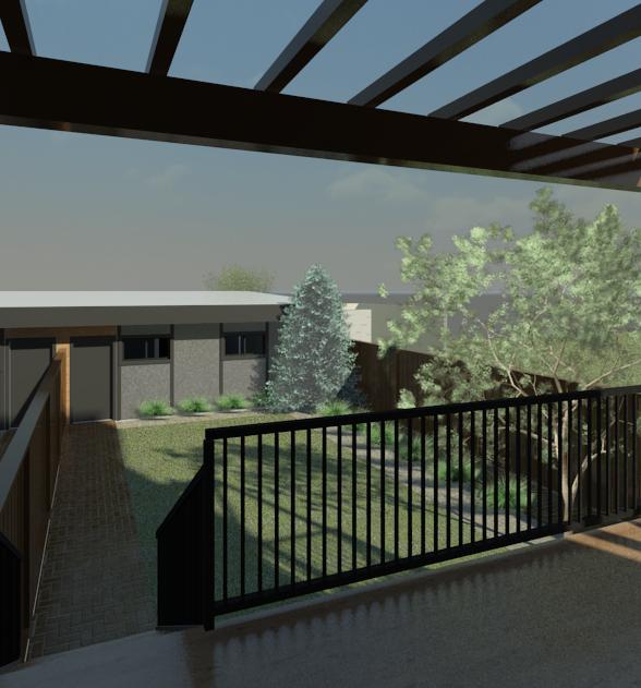 900sf of Fenced Private low-maintanence Landscaped Area. (Trees, Grass and Shrubs)